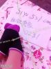 粉色花纹白色袜边超薄棉袜原味丝袜|袜类臭棉袜