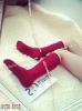 酒红色长筒短棉袜