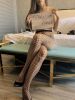豹纹裙,网袜,丁字裤三件套原味套装类衣&裤&袜套装