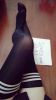 黑色天鹅绒条纹长筒丝袜手感滑腻