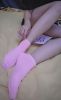 闲置粉红色纯棉袜子哦,穿的运动鞋,脚上容易出汗,小哥哥能帮我脱下来嘛?