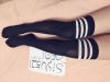 很臭的黑色长筒条纹袜
