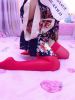 性感sao浪妩媚大红色过膝长筒袜