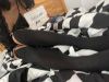 小腿黑色绑带棉袜