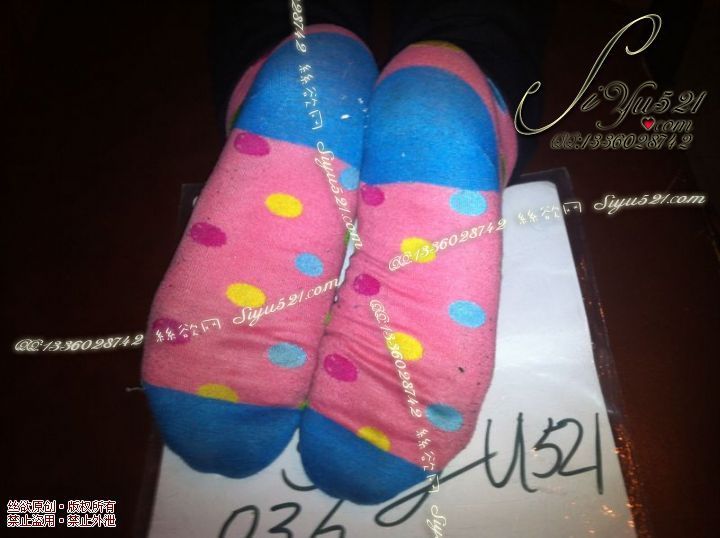 致命臭(此活动MM随机,不能指定)——2013-4-10日实拍顾客订购的1双棉袜,汗脚妹超重口味(棉袜),不可选择MM,免费附带无水印高清收购足底实拍图。