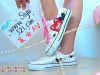 拍下后,款后还可以再穿一个星期哦,这个是自己油画上去的哈,见丑见丑拉,呵呵,闲置二手卡通帆布鞋哦