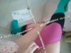 【处子の粉妹妹】绿粉黑三色拼接高筒棉袜