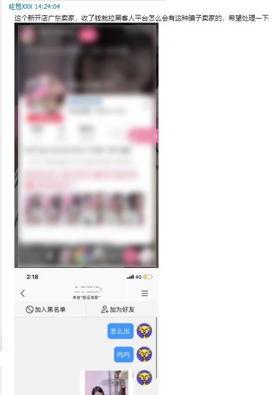 近期有多名顾客向客服反应,因获取某些店铺卖家的QQ沟通购买事宜,但没有从网站走单,私下付款后被卖家拉黑。